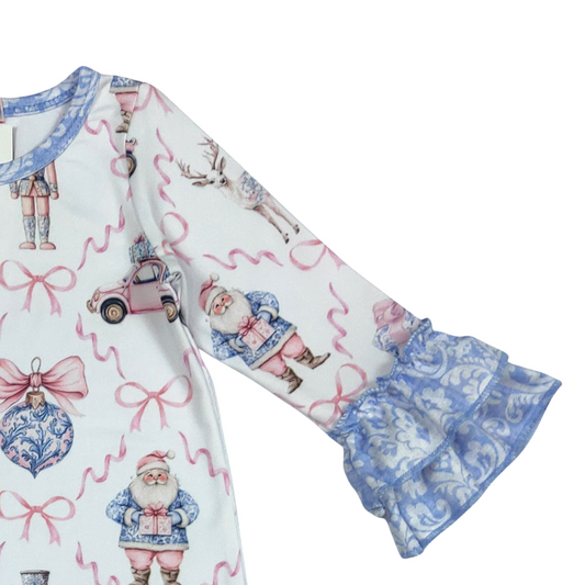 Blue Damask Nutcracker Ruffle Romper