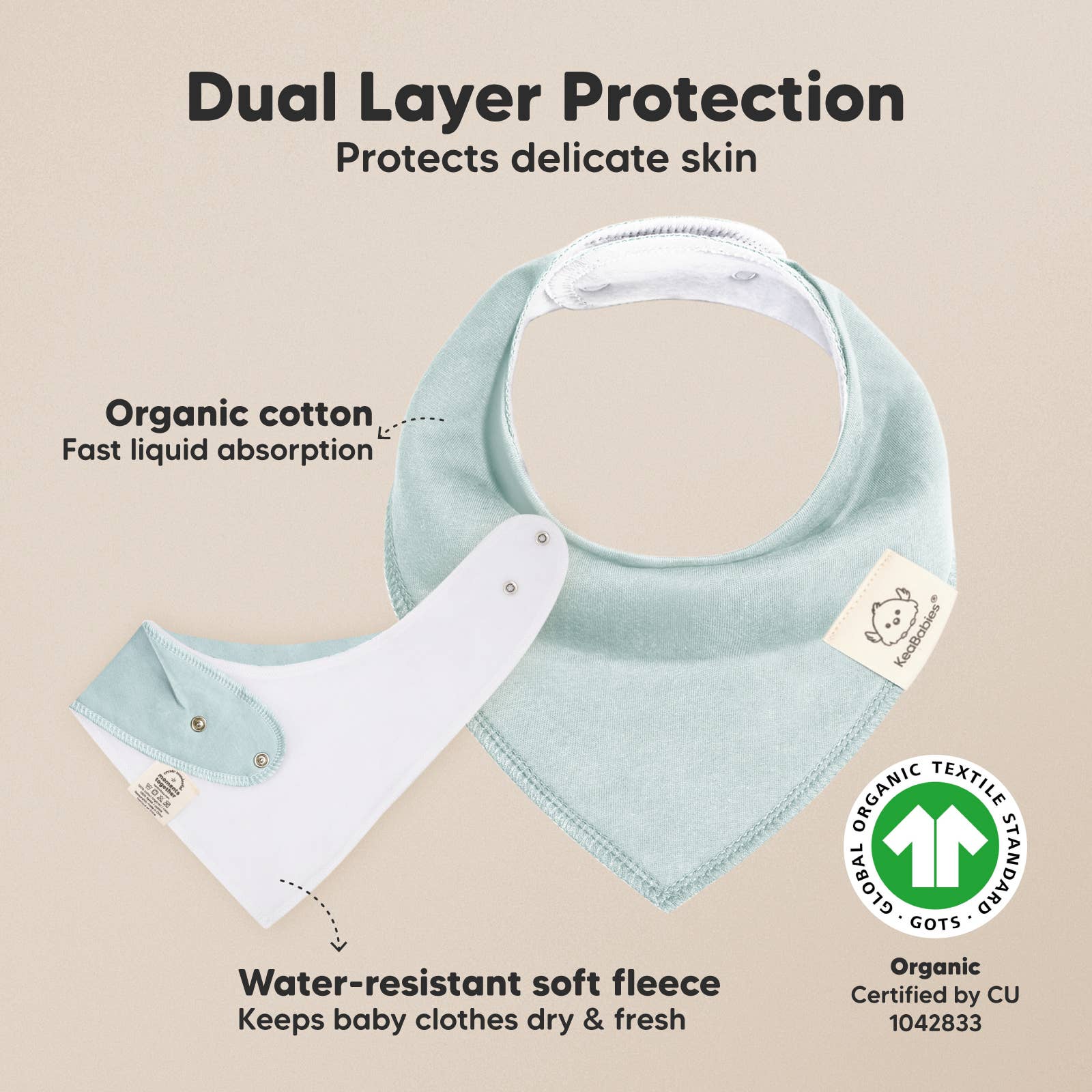 KeaBabies Bandana Drool Bibs for boys and girls are made from soft, organic cotton that's gentle on the skin. These baby bibs for drooling and teething, feature two sets of adjustable snaps and grow with your newborn. Our machine-washable and dryable infant bibs are an ideal baby registry gift. Soft organic cotton for 100% comfort - Backed with fleece for maximum absorption - Three adjustable neck line sizes - Machine washable and dryer safe