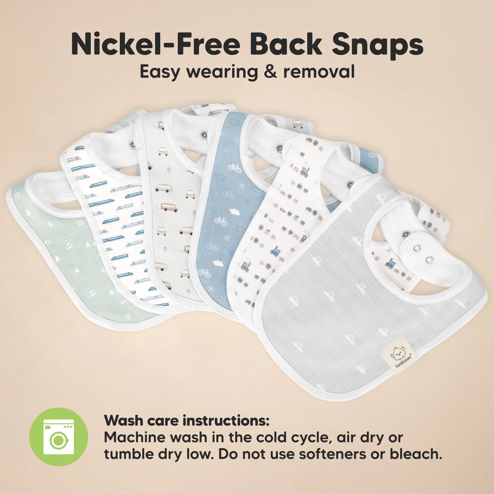 Featuring a dual-layer of GOTS Organic Cotton, our KeaBabies Organic Baby Drool Bibs are made to be extra absorbent and waterproof with soft polyester fleece backing for baby's comfort. Our baby bibs also come with fine-quality stitching that is gentle on delicate skin and the soft bibs allows babies to keep their cool while they drool. Our baby drool bibs come with 3-stage snaps, designed to grow with the baby. Suitable for newborns, infants and toddlers or from 0-24 months. Available in more than 10 designs, the spit ups bibs come in unisex, gender neutral designs or baby boy bibs design and baby girl bibs design.