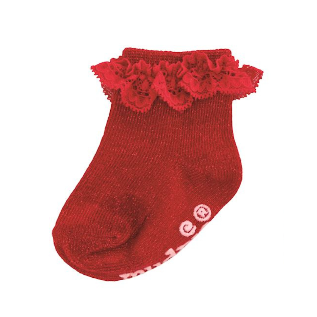These cotton hosiery socks are perfect for the holiday season and feature lurex detail and lace cuffs.