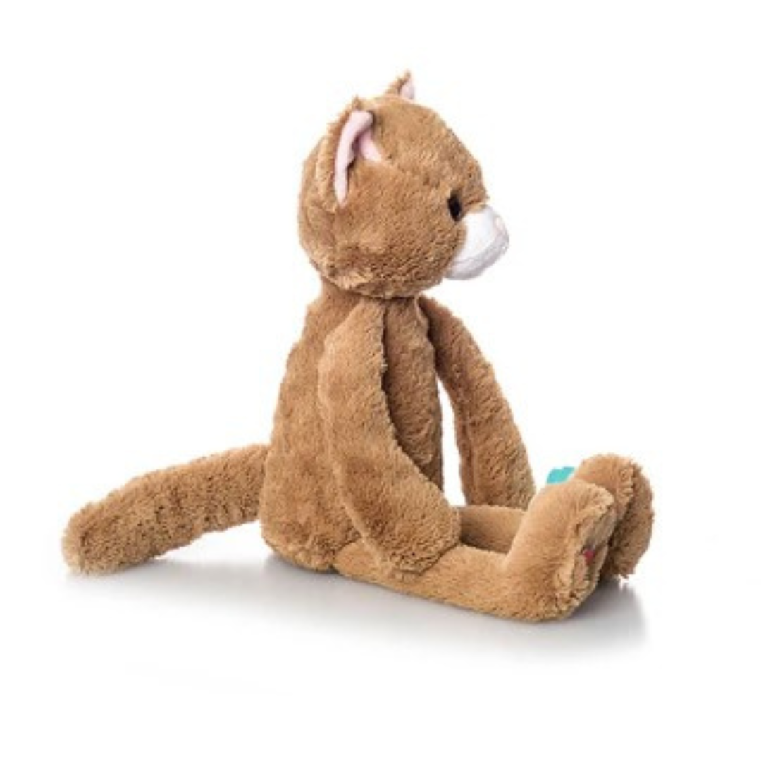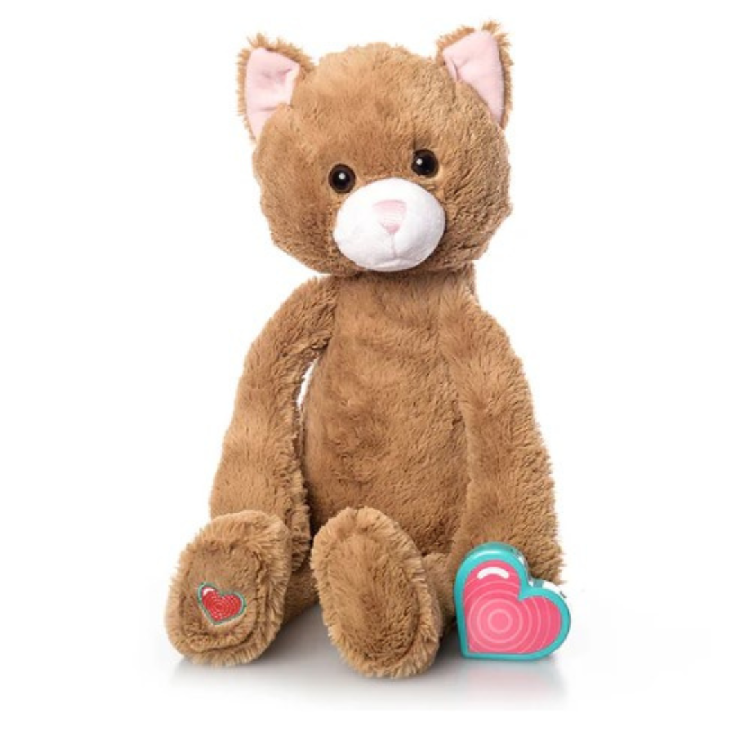The vintage cat kit includes a 13- 15" stuffed orange cat and an easy-to-use heart-shaped recorder. The cat is perfect to cuddle, made with a soft fleece-like material with poly fiber stuffing and a velcro closure in the back where the recorded heartbeat or message is secured.
