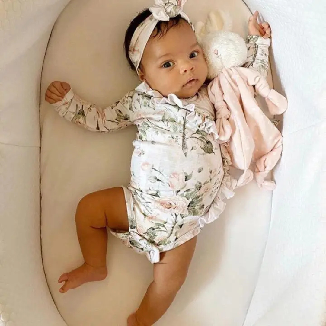 Our Knotty Friend loveys have won the hearts of wee ones around the world. A sweet fur baby-safe embroidered face with velour floppy body in sweet pink with cream polka dots. This bunny's knotted arms and legs are perfect for gentle chewing. Untie the knotted arm or leg and re-tie onto baby's pacifier to keep it close at hand for an even better way to soothe. Signature three carrot tag for little one's fingers to explore.
