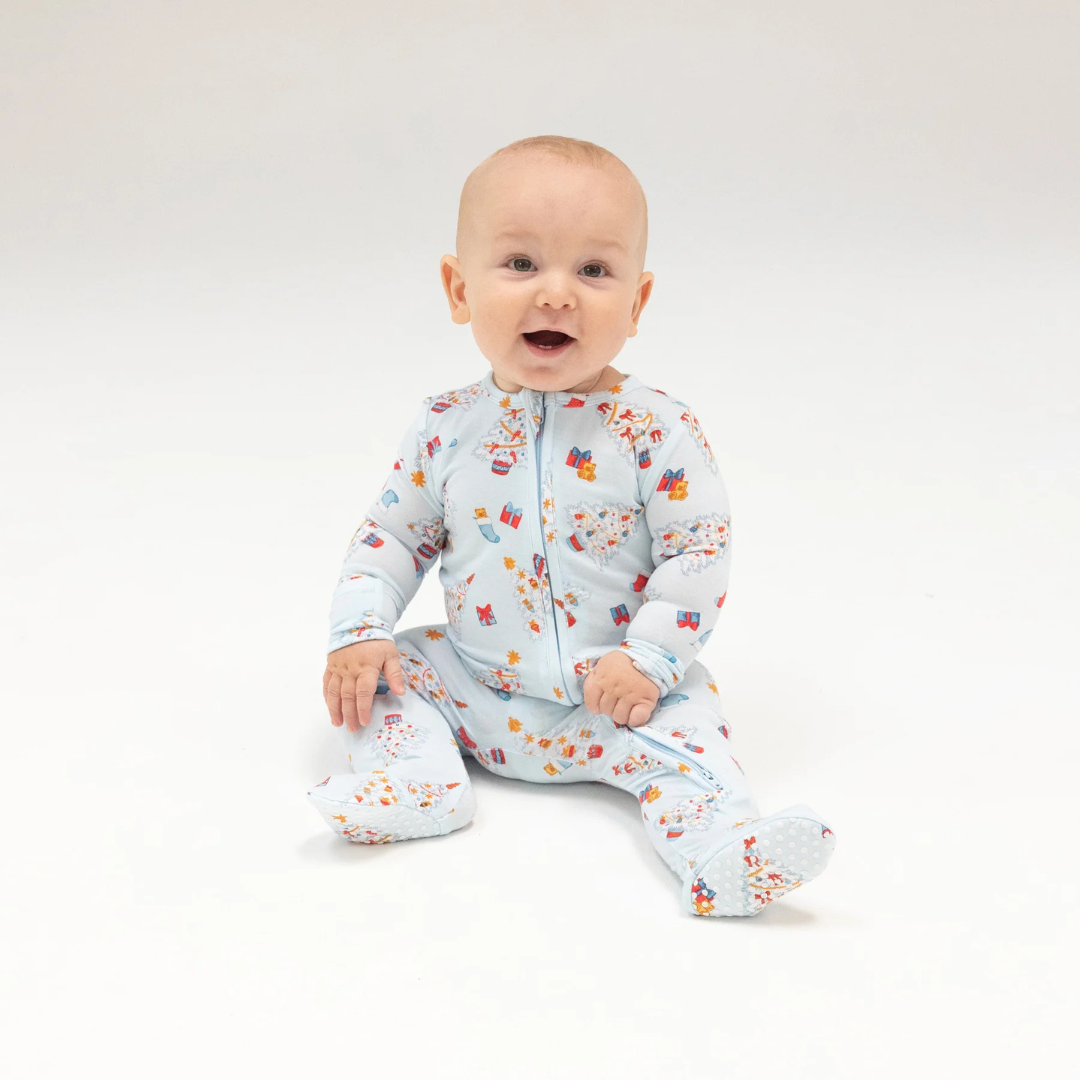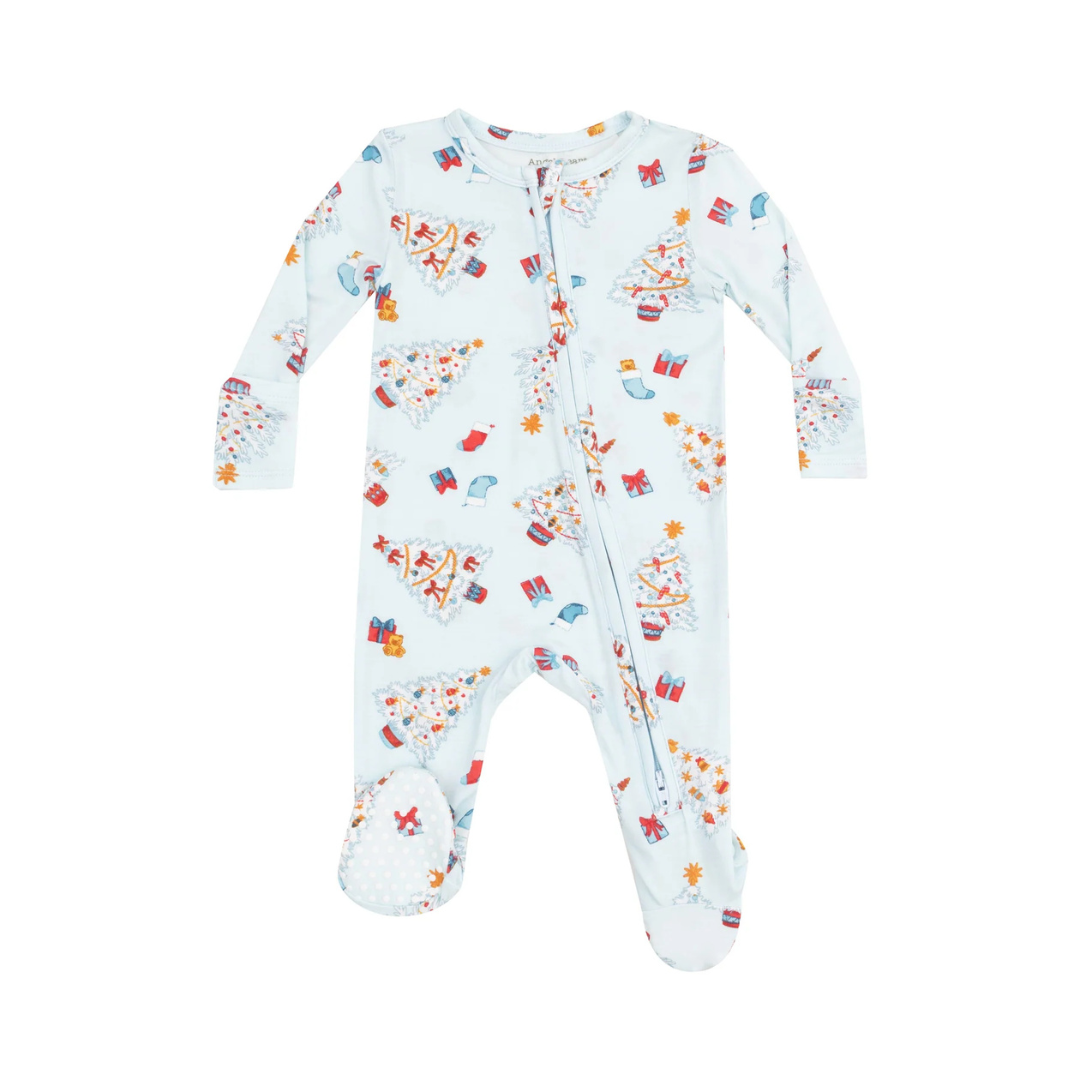 Our signature zipper footie makes changing your baby a Snap! (or as we like to say a Zip!) Super soft bamboo fiber fabric and Angel Dear's signature prints will keep the oohs and aahs a- coming. This sweet print features a vintage look with Christmas trees, presents, and stockings filled with teddy bears.