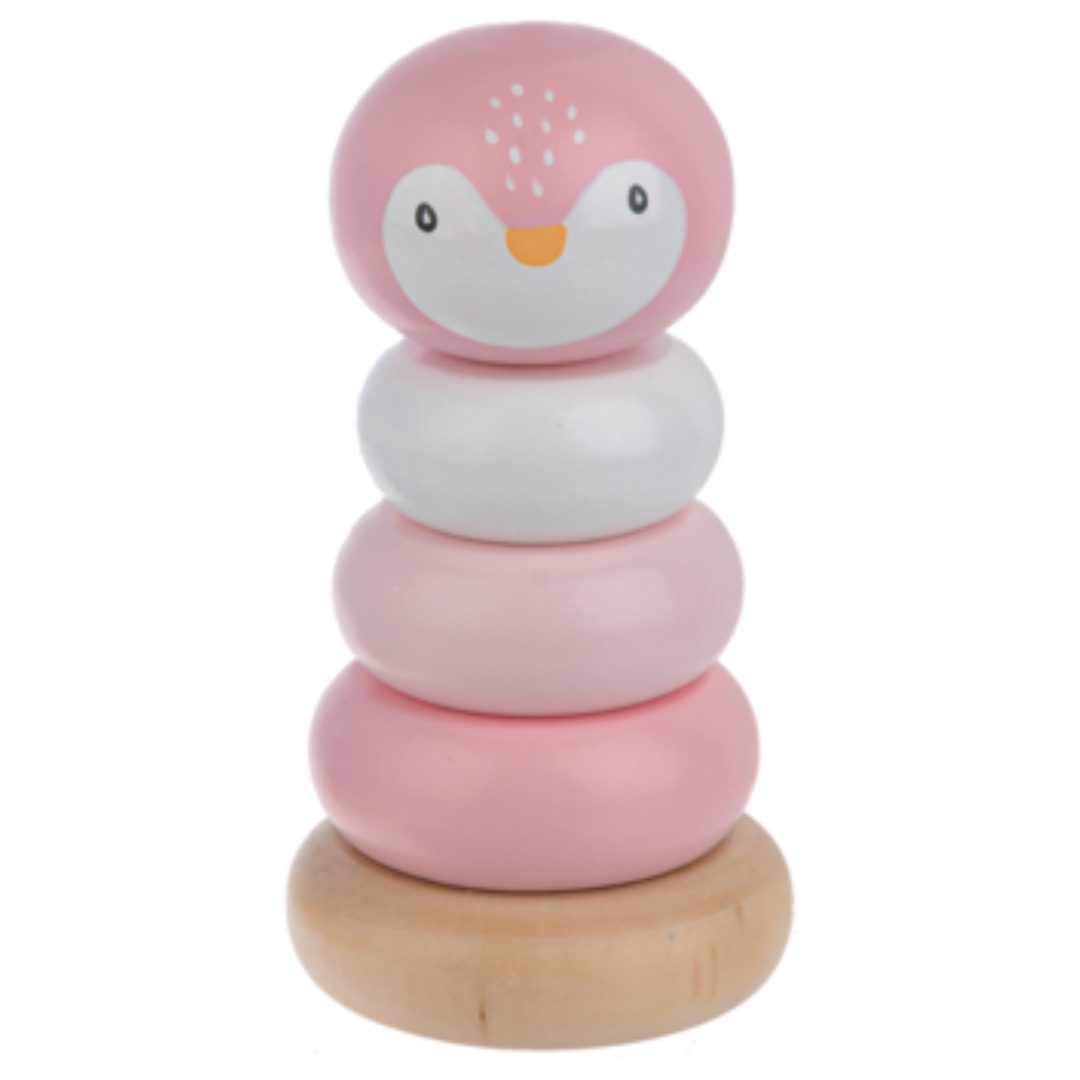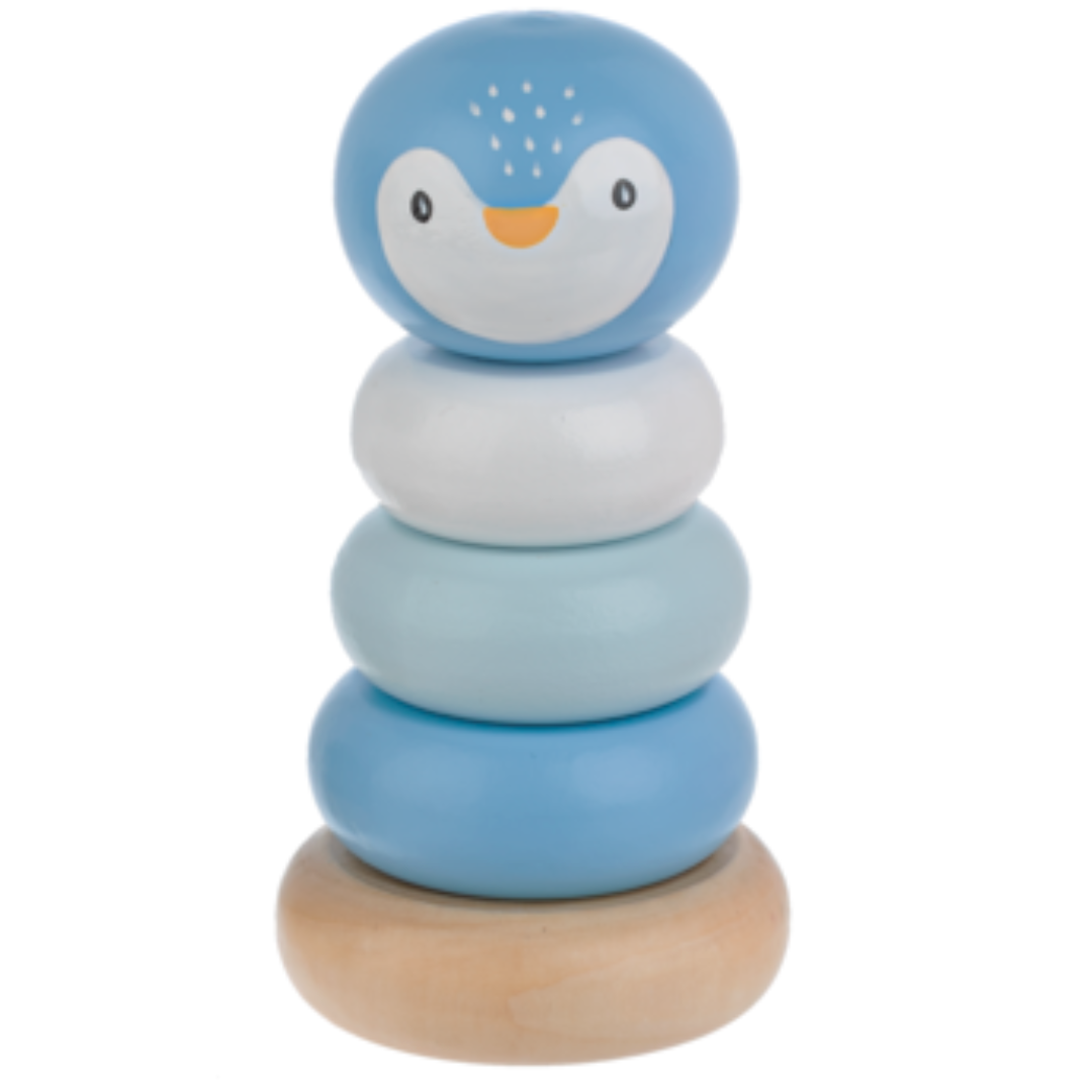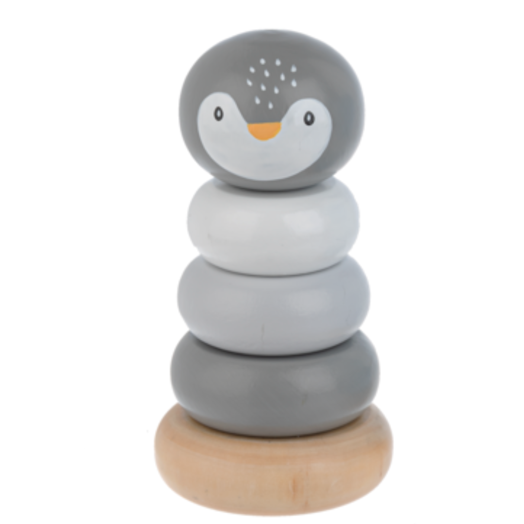 Cute wooden penguin stacker toy. Great gift for a stocking stuffer at Christmas. The stacker toy includes 3 rings and solid non-toxic wood base. Great for developing color and size recognition in kids. This penguin stacker is apropriate for ages