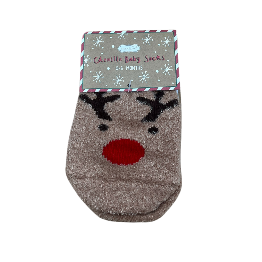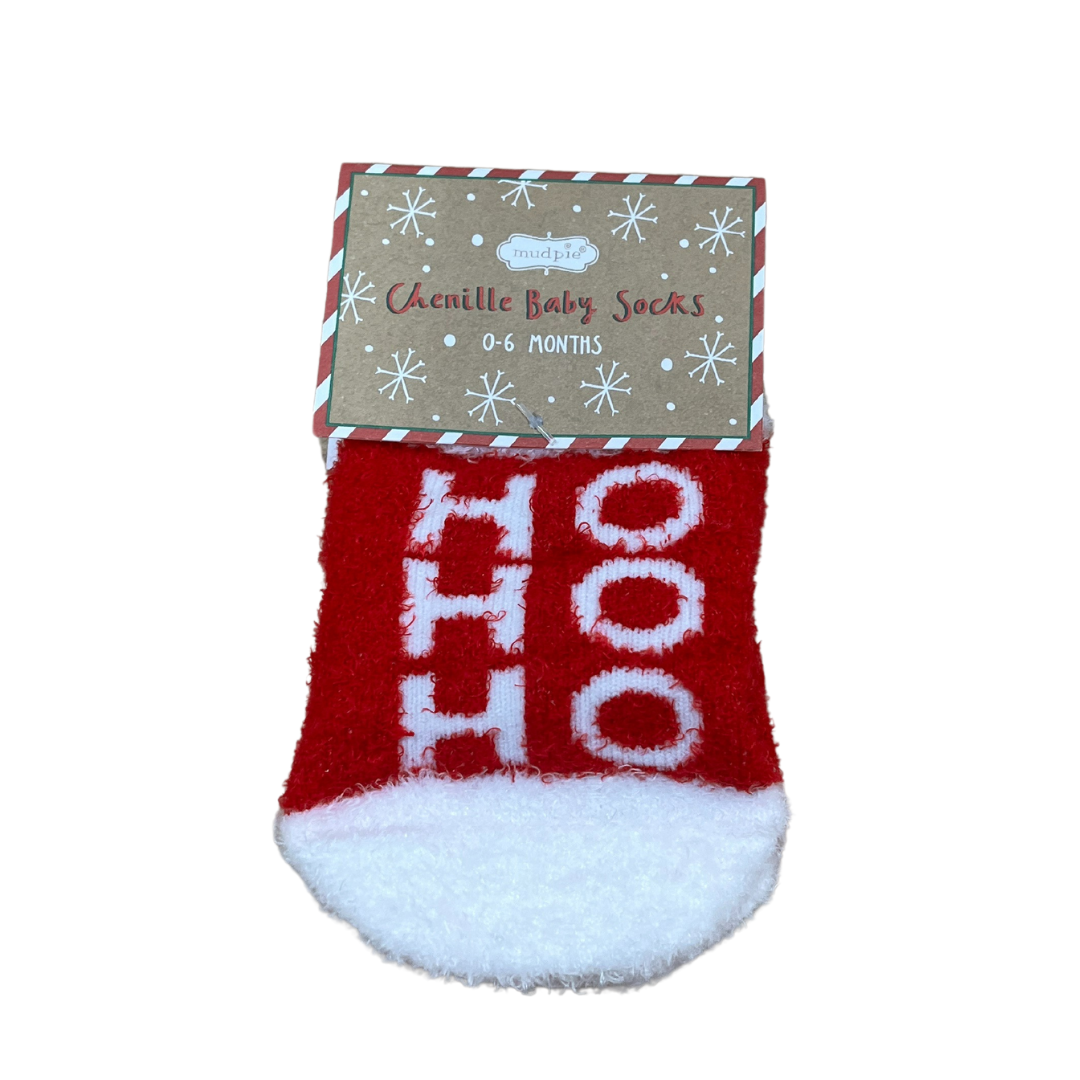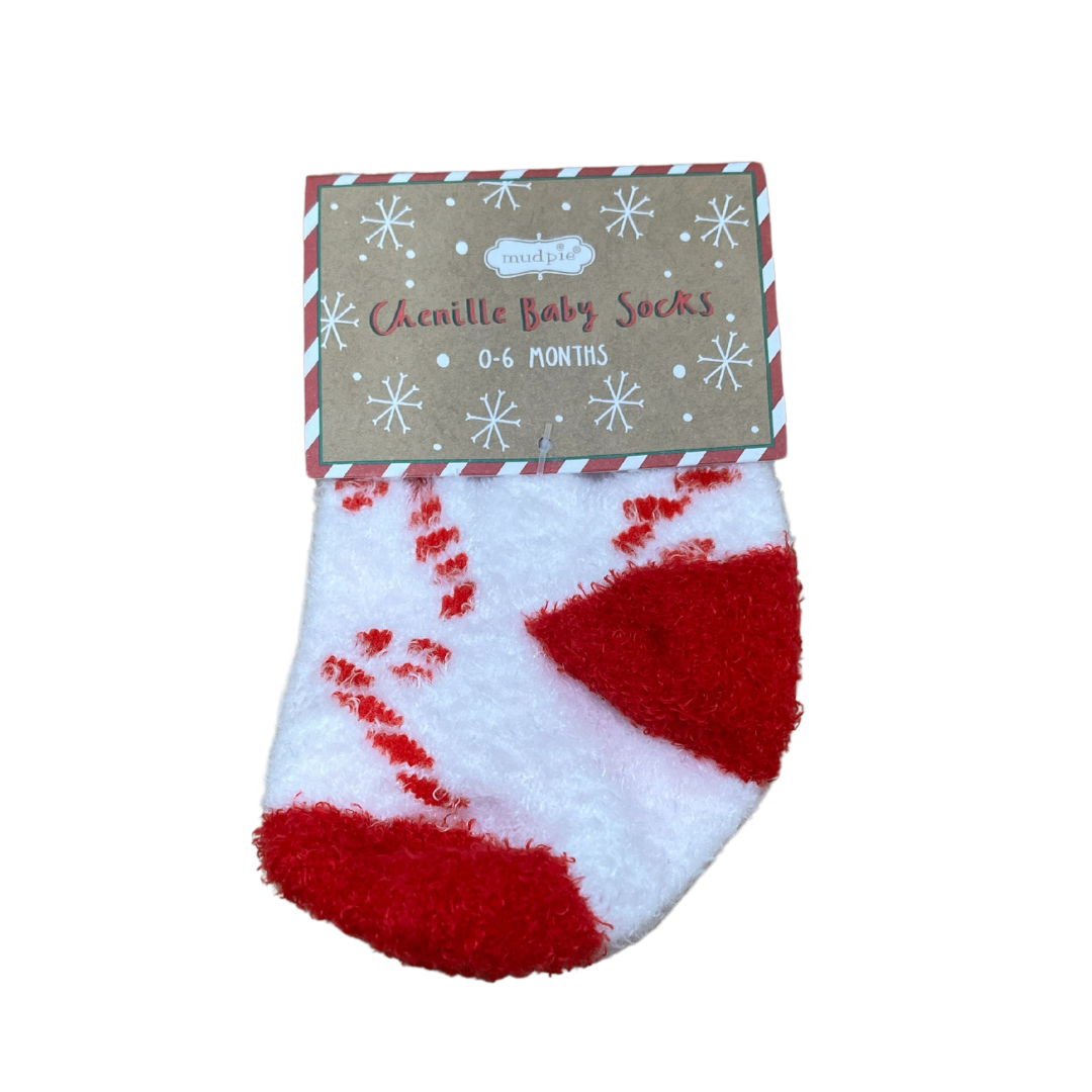 These baby socks are made of super soft chenille! They come in a holiday assorted variety and are size 0-6 month. They would make the perfect stocking stuffer!