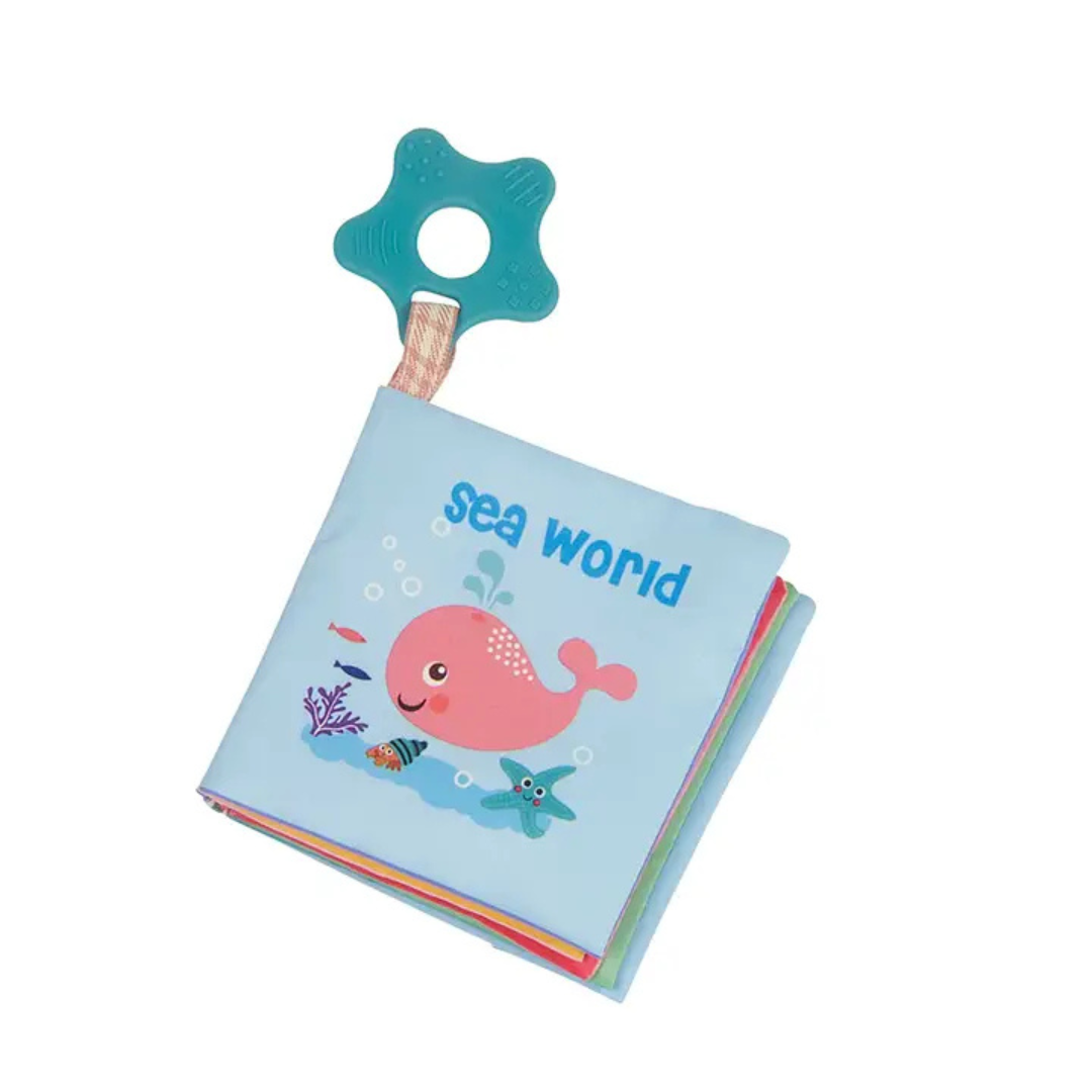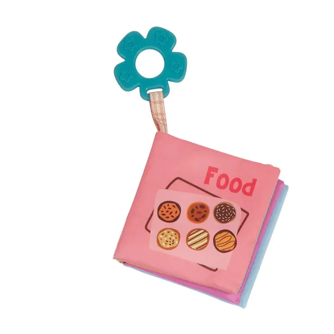 These cloth books are just the right size for little ones to hold and chew! Each book measures 4.5" square with thick, padded pages that are easy for small hands to grasp and turn but not tear. These soft colorful books feature bright, colorful pictures with matching words, a teething ring for extra enjoyment, and squeaker and crinkle for additional sensory stimulation.
