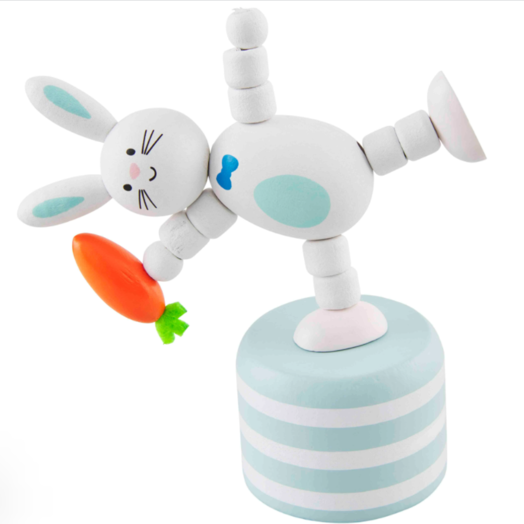 For days full of laughter, grab our collapsing Easter toy! The wooden character collapses and springs back to life with simple push of the base. Complete the set with our other collapsing toys including a blue bunny, pink bunny, chick, and a lamb.