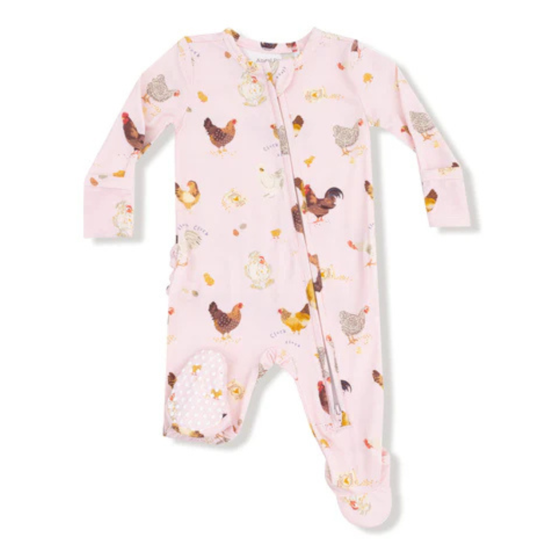 Our Signature 2 Way Zipper Footie makes changing your baby a Snap! (or as we like to say a Zip!) Super soft viscose from bamboo fabric and Angel Dear's signature prints will keep the oohs and aahs a- coming. This gender neutral chicken print is perfect for any little boy or girl!