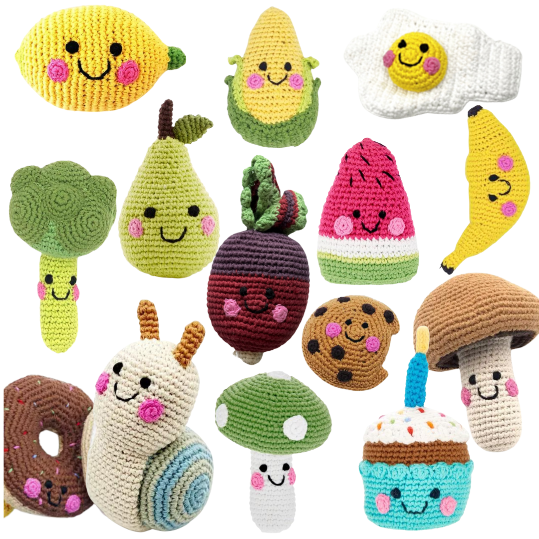 This baby toy is perfect for tiny hands to grab onto and the rattle inside gives a soft sound when shaken. Handmade with cotton yarn, this plush toy is super soft and lightweight. Perfect for hours of pretend play in baby's kitchen. Handmade in Bangladesh, Pebble was born out of a love for babies and their mothers