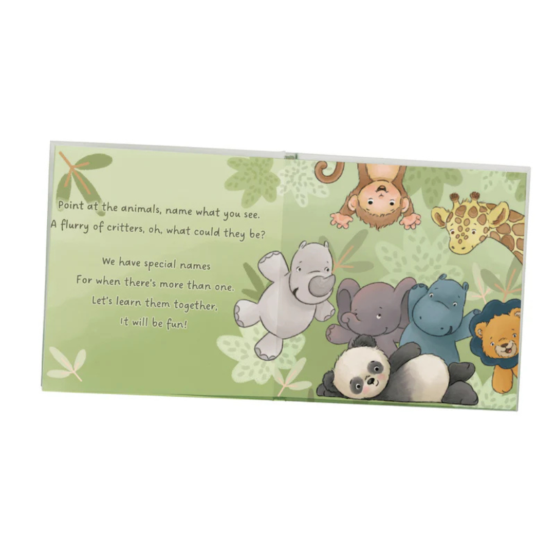 Come along and meet the Critter Crew – a wild and wonderful journey through he jungle where little ones discover how animals come together! From pride of lions to a herd of elephants, this charming board book teaches group names in the most delightful way. With sweet illustrations and playful rhymes, learning jungle plurals has never been so fun.