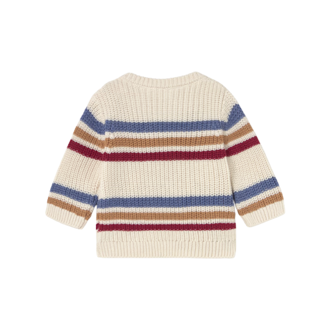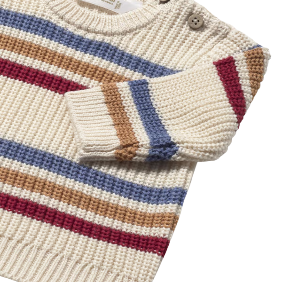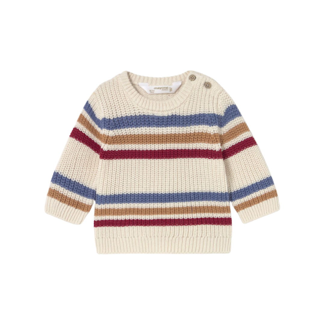 This long sleeved sweater features autumn toned colors that is perfect for fall! It has a round neckline and buttons fastenings on the shoulder. Pair it with the matching amber ribbed pants to complete the look.
