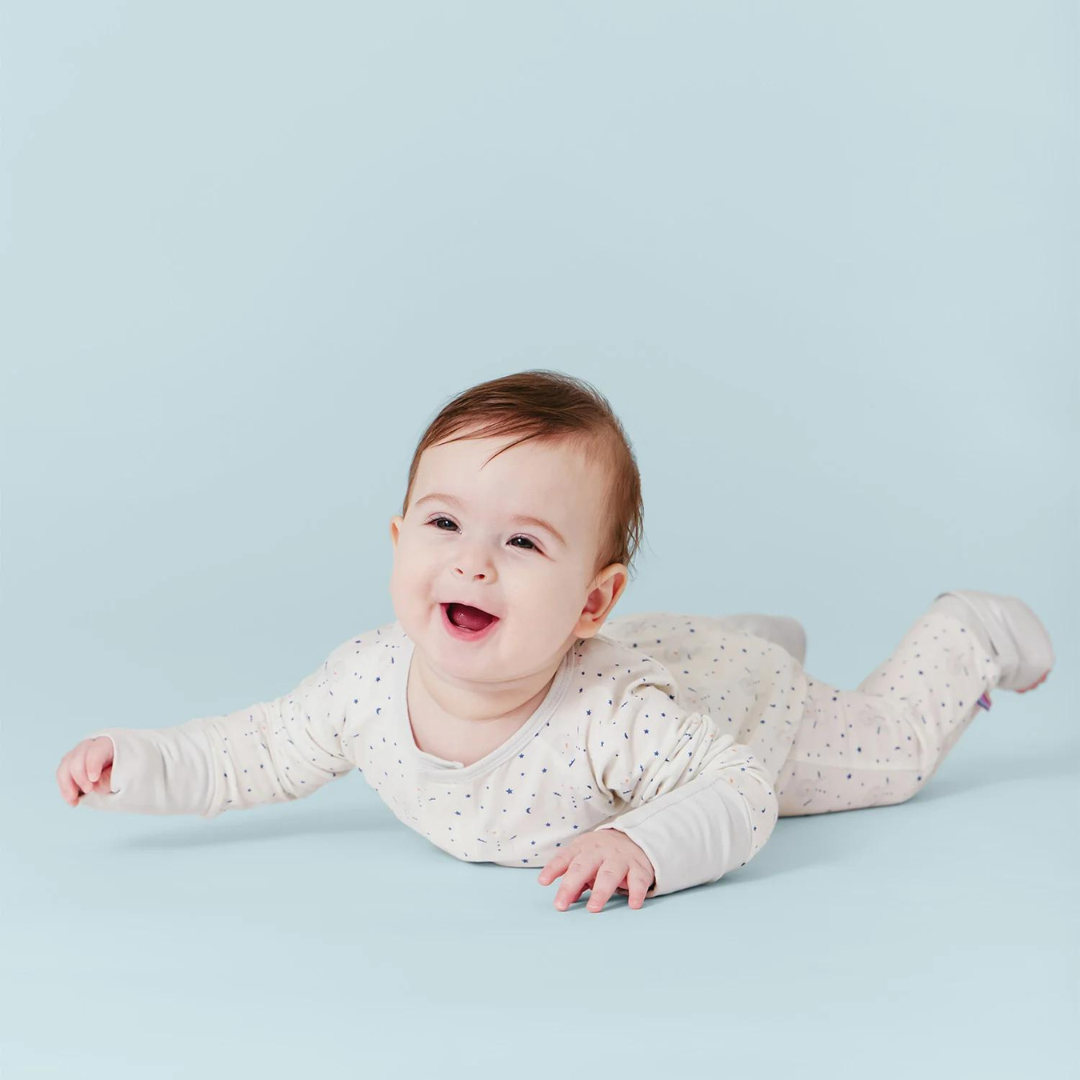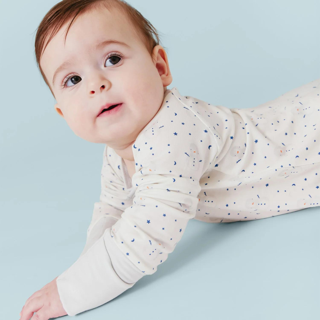 Meet our grow with me convertible coverall, a one-piece that lets you adjust its features as your baby grows. magnetic closures ensure quick and quiet changes, and foldover cuffs for hands and feet extend the length and life of the coverall. made of eco-friendly TENCEL™ modal that's silky soft, breathable, and gentle on sensitive skin, this is one piece of clothing that baby won’t outgrow in the blink of an eye. It features a navy starry snowman print.