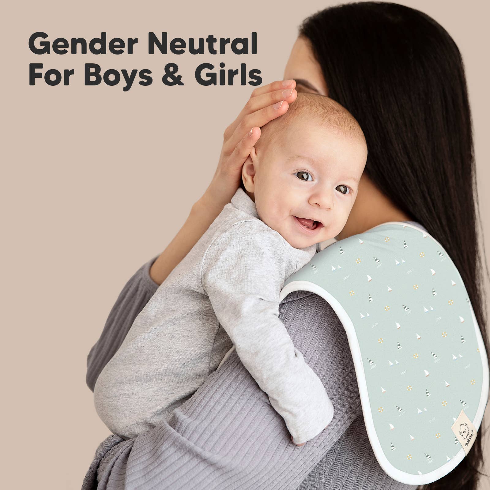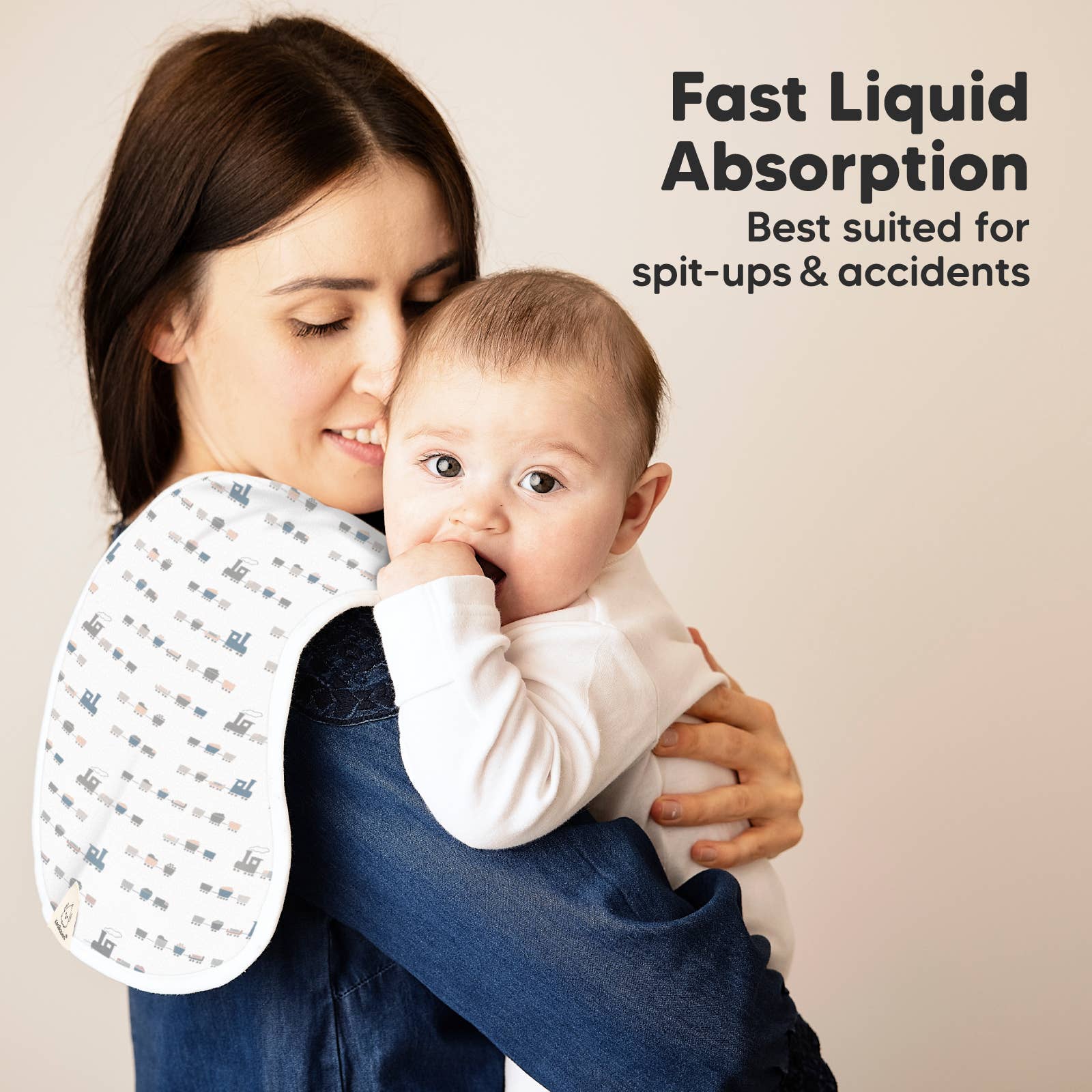 Our KeaBabies Urban Organic Burp Cloths are the perfect burping cloths for babies. Filled with quality fleece for optimum absorption, the highly soft and absorbent burp cloths keeps parents fresh and dry from spit ups, drool or puke. Sized at 21" x 10", these large burp cloths are wide enough to cover your shoulders and the unique figure-8 design prevents these spit up rags from slipping. With over 10 designs available, our baby burp cloths comes in unisex gender neutral designs, baby boy burp cloths designs or baby girl burp cloths designs. Made with 100% organic cotton on both sides of the burp cloth, it is safe for your newborn baby's sensitive skin. These burp rags are machine washable.