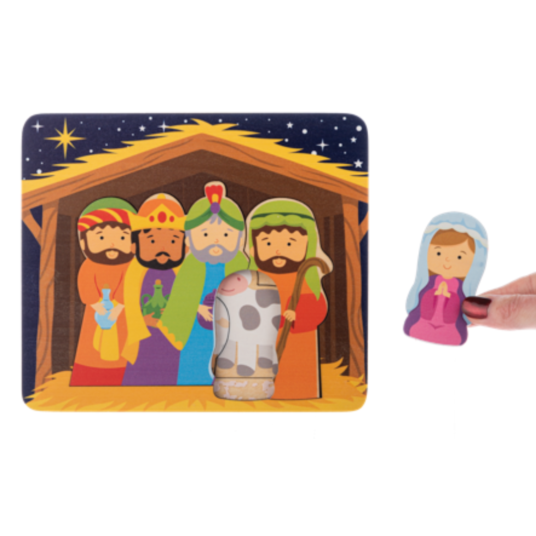 Enjoy this three layered puzzle from Ganz. It features the nativity scene and is perfect for those Christmas stocking stuffers! It includes 7 pieces and recommended for 12m+.