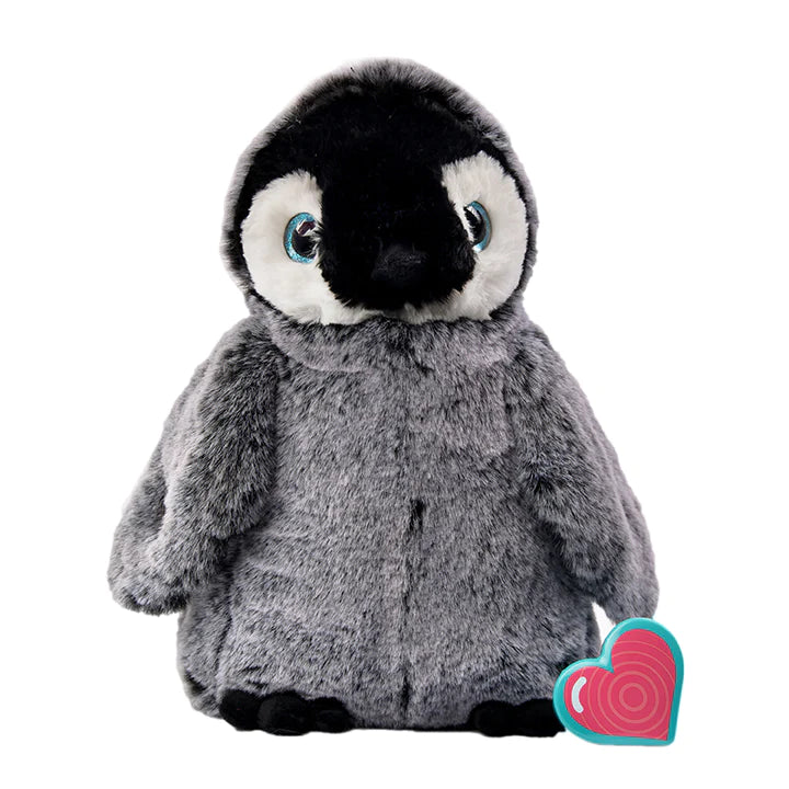 The penguin kit includes an adorable 11" stuffed penguin and an easy-to-use heart-shaped recorder. The penguin is perfect to cuddle, made with a soft fleece-like material with poly fiber stuffing and a velcro closure in the back where the recorded heartbeat or message is secured.