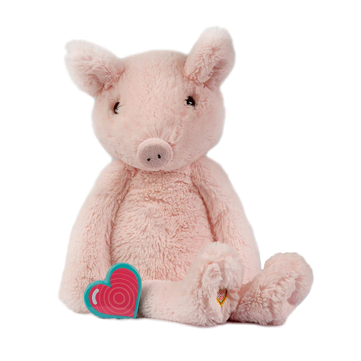 The vintage pig kit includes a 15" stuffed lamb and an easy-to-use heart-shaped recorder. The pig is perfect to cuddle, made with a soft fleece-like material with poly fiber stuffing and a velcro closure in the back where the recorded heartbeat or message is secured.