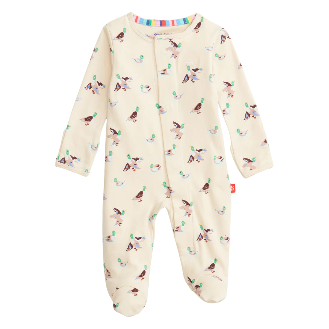 Our organic cotton Magnetic Footie, designed with magnetic closures, is a quick and quiet lifesaver for all-day and middle-of-the-night diaper changes—that's up to 12 times a day (!). Made from GOTS certified organic cotton, this sleeper is so soft, breathable, and gentle on sensitive skin. Coordinate with matching pj set for big brother!