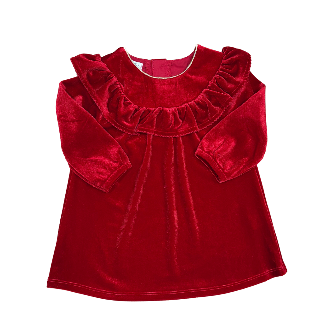 Discover the perfect dress for Santa lovers with our Girls' Red Velvet Dress. Made from luxurious velvet, this long sleeve dress features a delightful chest ruffle that adds a touch of charm. Crafted with a blend of 95% Polyester and 5% Spandex, it offers a comfortable and flexible fit. The dress is lined with a combination of 86% Polyester and 14% Cotton for added softness and breathability.