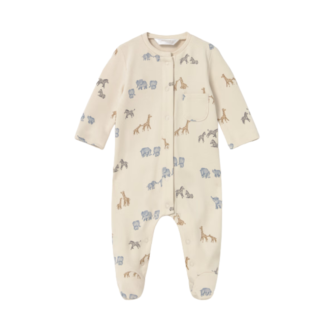 Let your baby drift off into the savanna with this sleeper. This cream-colored footie is covered in a charming safari animal print featuring giraffes, elephants, and zebras in soft neutral tones. The gentle cotton fabric and convenient snap-button design make this a nursery essential that’s as adorable as it is practical.