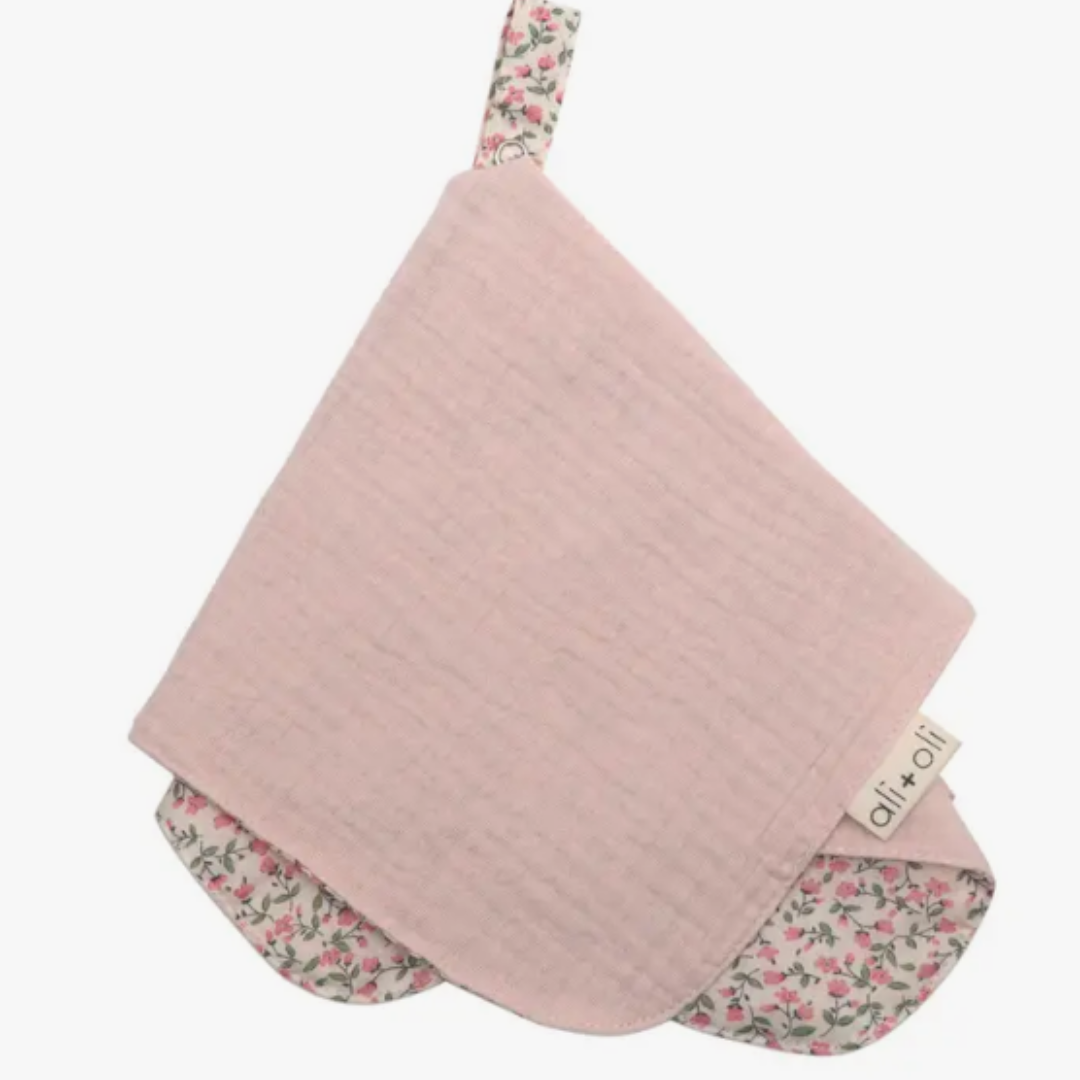 This paci blanket holder from Ali+Oli is made from 100% ultra-soft muslin cotton that is delicate against your baby’s sensitive skin. It features a fabric loop with a led-free snap closure that easily attaches to your baby's pacifier or teether making it the perfect lovey blanket for your baby. It doubles as a security blanket that is the ideal size for cuddling.