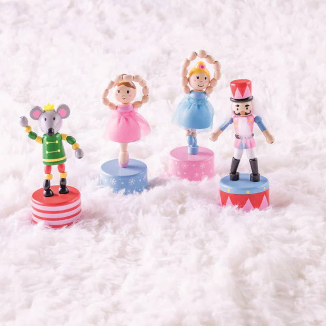 For days full of laughter, grab our collapsing nutcracker inspired toys! The wooden character collapses and springs back to life with simple push of the base. Complete the set with our other collapsing toys including a nutcracker, mouse, pink ballerina and blue ballerina.