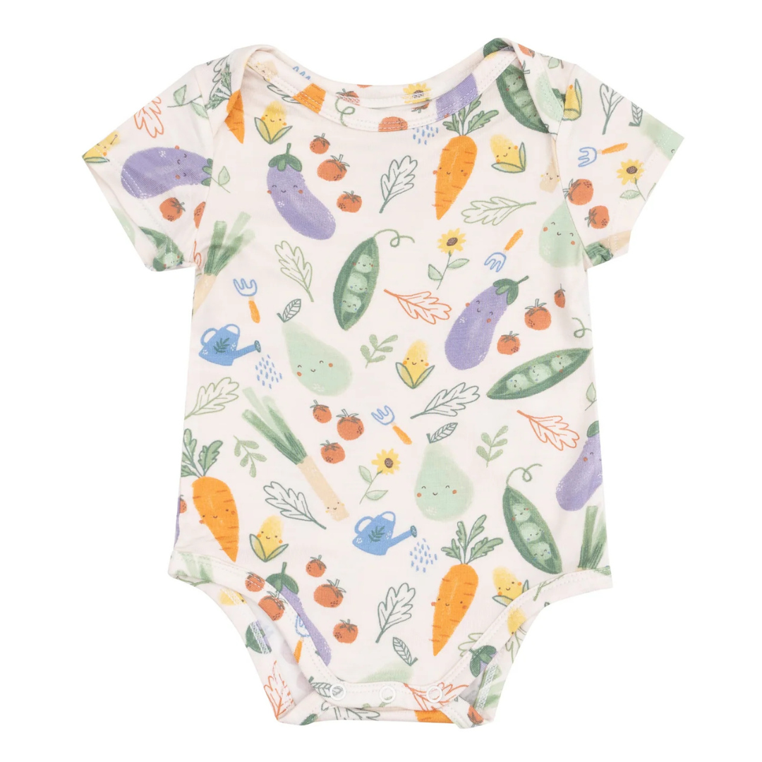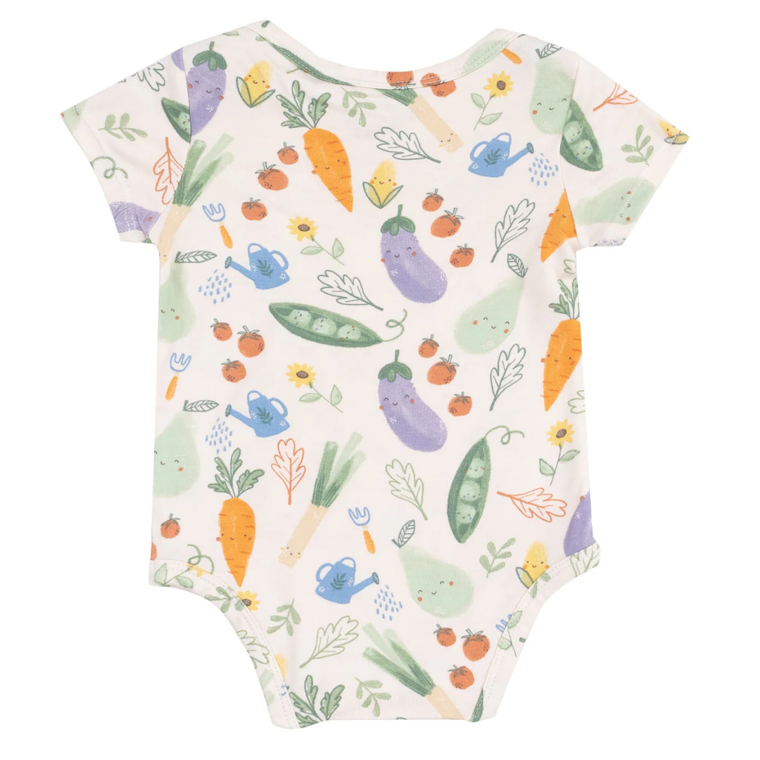 Our short sleeve bodysuit is here to make dressing your little one a breeze! Made with luxuriously soft viscose from bamboo, it’s lightweight, breathable, and oh-so-cozy. Perfect for layering or wearing solo, this wardrobe staple is ready for anything—from playtime to naptime. It features various veggies and leaves making it the perfect gender neutral gift!