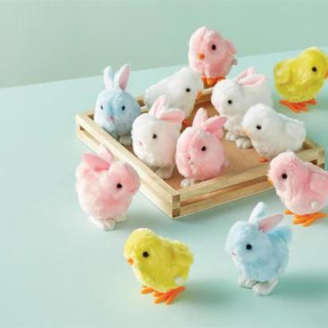 A fun addition to add to your baby's Easter basket ! Assorted colors of chicks and bunnies that wind up and go.